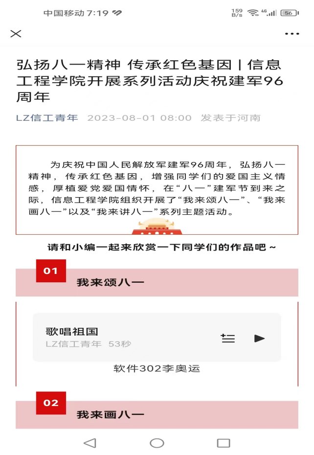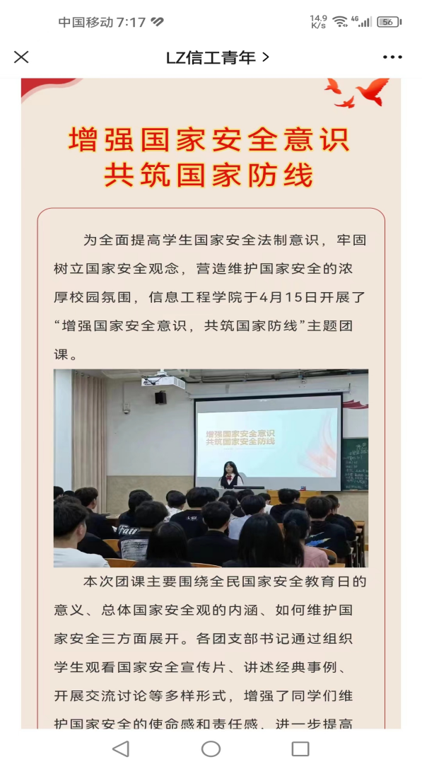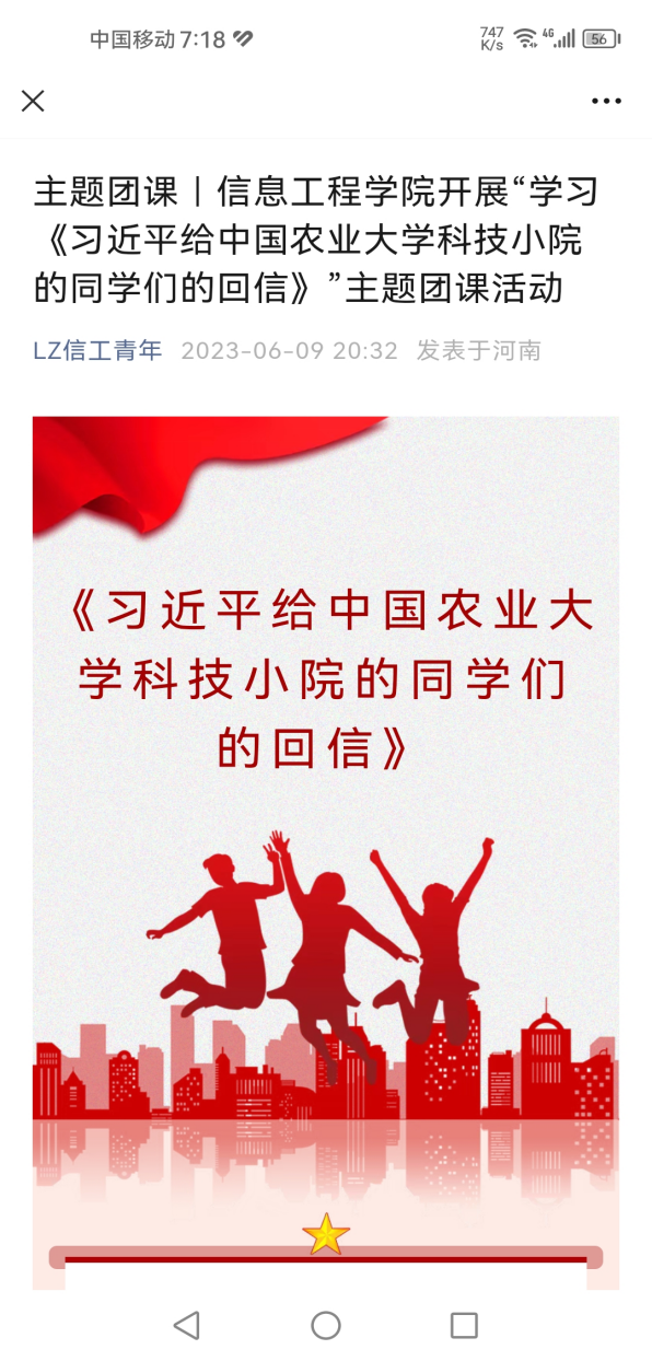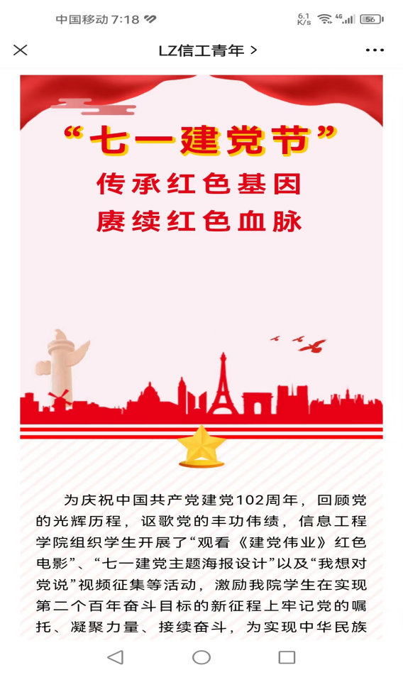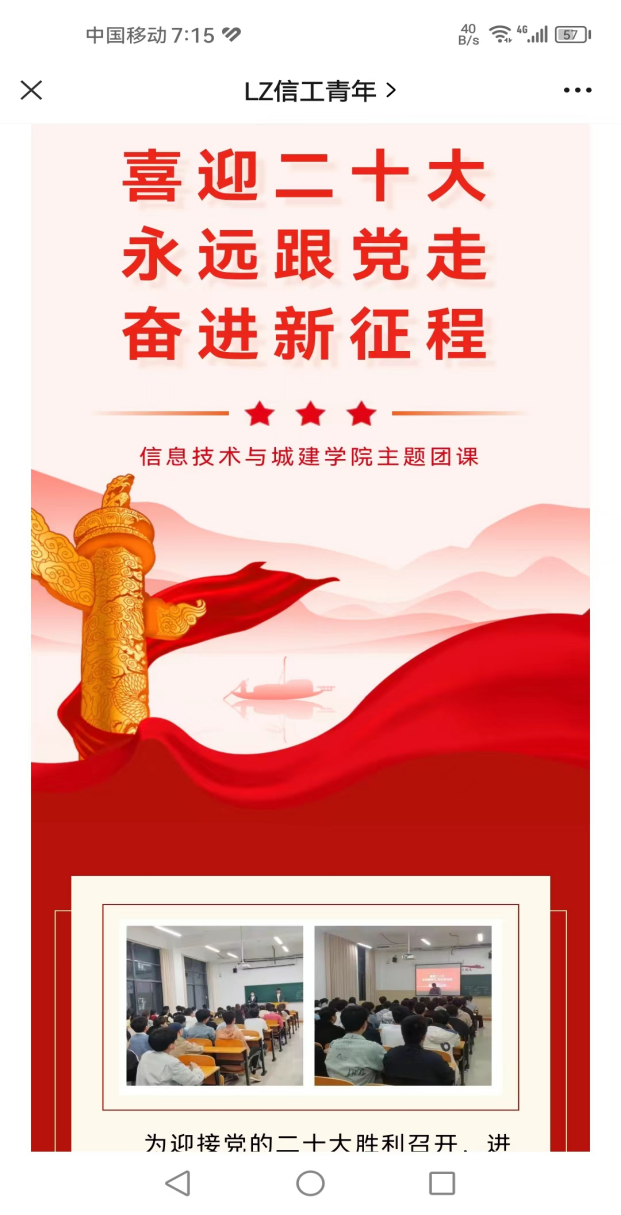 建设“微阵地”,筑牢线上堡垒。信息工程学院注重青年思想引领线上阵地——“微阵地”建设,积极建设新媒体平台——LZ信工青年,利用学生喜闻乐见的方式制作内容,运用丰富生动的网络语言唱响主旋律、传播正能量,持续增强对学生意识形态领域的正向引领渗透力。