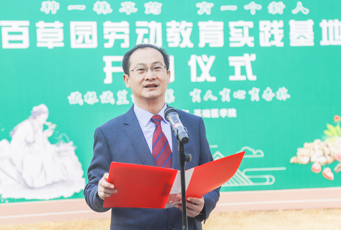 李保安在致辞中表示,劳动教育是全面育人的重要组成部分,是培养学生创新意识、增强团队凝聚力的重要途径。劳动教育不仅能提升个人的身体素质,也能培养持之以恒的态度和坚韧不拔的毅力。百草园劳动教育实践基地的开园,为同学们提供了一个亲近自然、体验劳动快乐的场所。他寄语广大老师要不辞辛劳地培养社会主义合格接班人,实现“种一株草药,育一个新人”的理念,鼓励广大同学通过劳动实现“识根识茎识中药,培根铸魂启智心”的目标。李保安表示,希望同学们能够秉承“学以致用 行以致远”的校训理念,在学习实践中践行知行合一,在劳动过程中启智增慧,勇于守正创新,敢于开拓进取,努力成为新时代优秀的创新型技能人才,努力把百草园劳动教育实践基地打造成为学校的一张靓丽名片。
