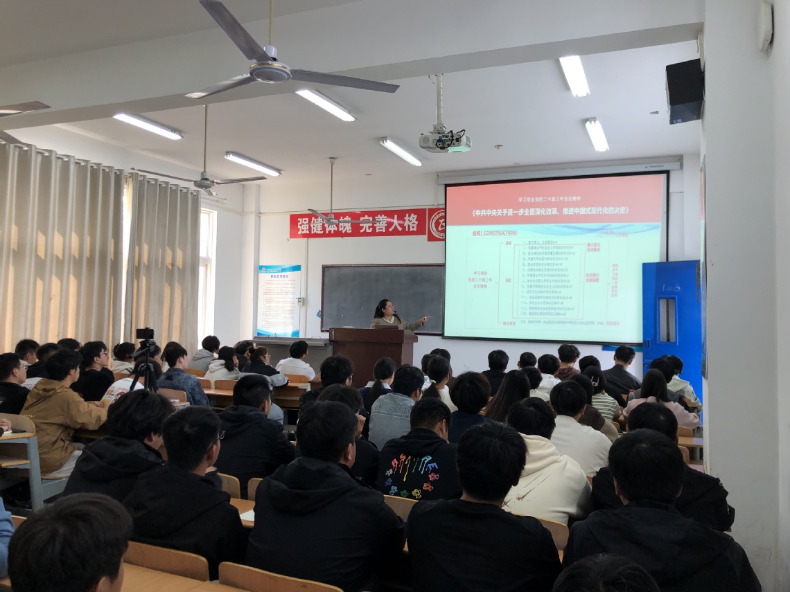10月24日下午,我校党的二十届三中全会精神理论宣讲团走进机电工程学院、汽车与轨道交通学院,宣讲团成员、马克思主义学院教师郭晓莹作专题宣讲。