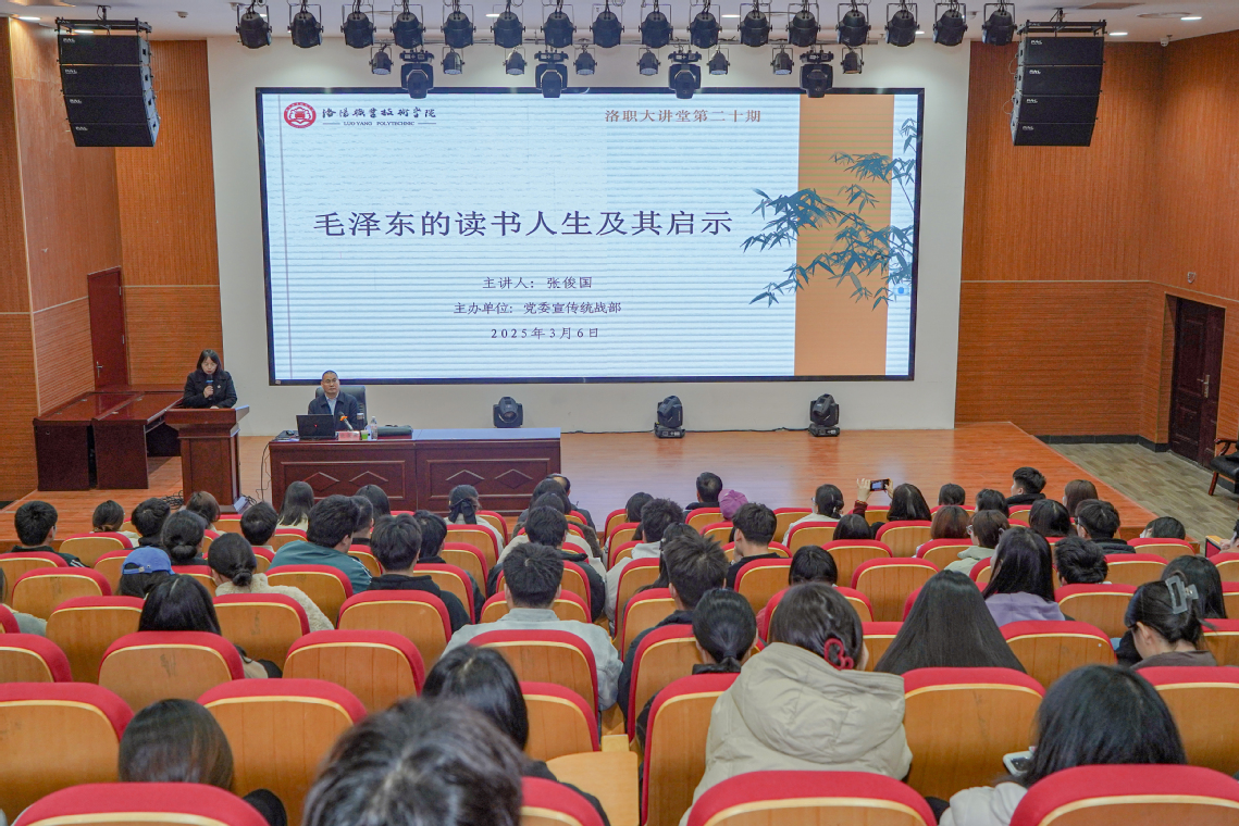 3月6日下午,洛职大讲堂2025年第一期在大学生活动中心心理剧场如期举行,河南科技大学博士生导师张俊国教授应邀开讲。党委副书记任晓平出席讲座。
