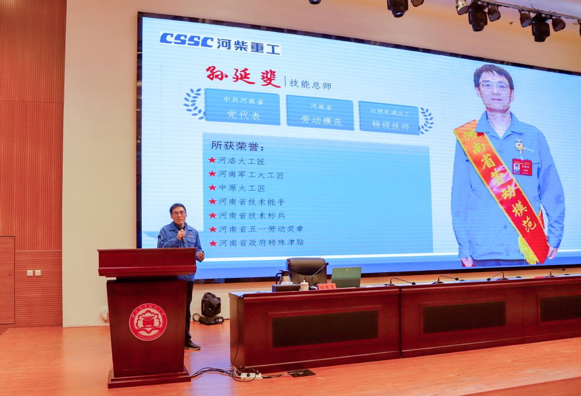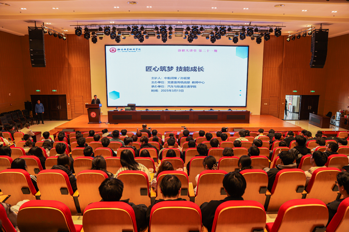 3月13日,由党委宣传统战部、教师中心主办,汽车与轨道交通学院承办的洛职大讲堂第21期在大学生活动中心一楼报告厅举行。河南柴油机重工有限责任公司技能总师孙延斐应邀开讲。