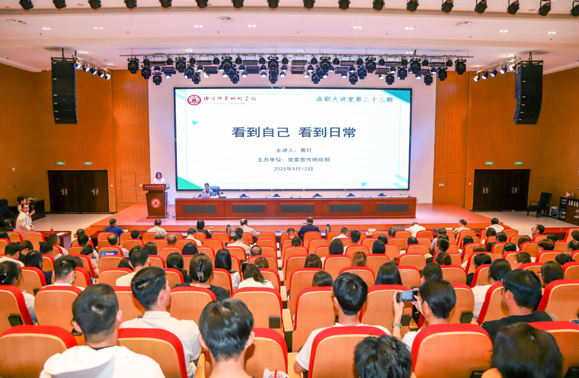 5月12日,洛职大讲堂第23期在大学生活动中心举行,知名作家黄灯应邀到校为广大师生作讲座。党委书记赵健、党委副书记任晓平出席讲座。