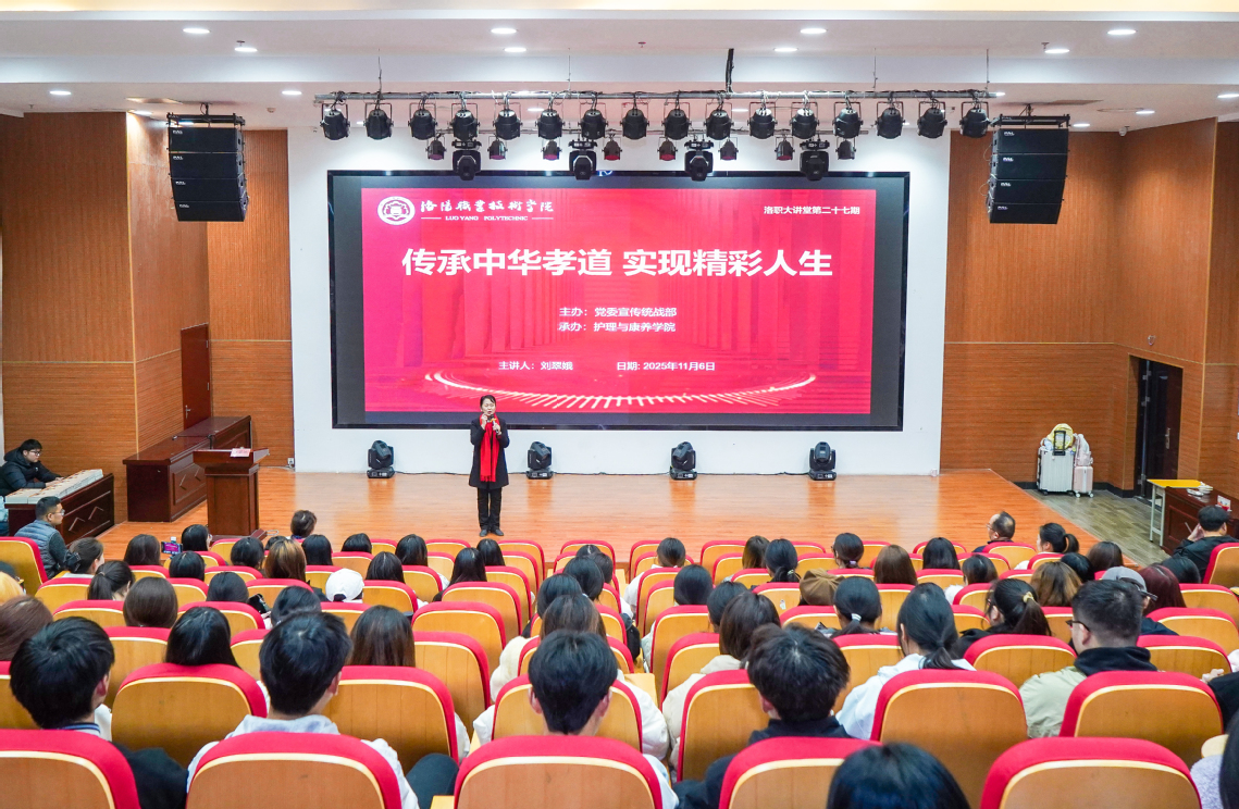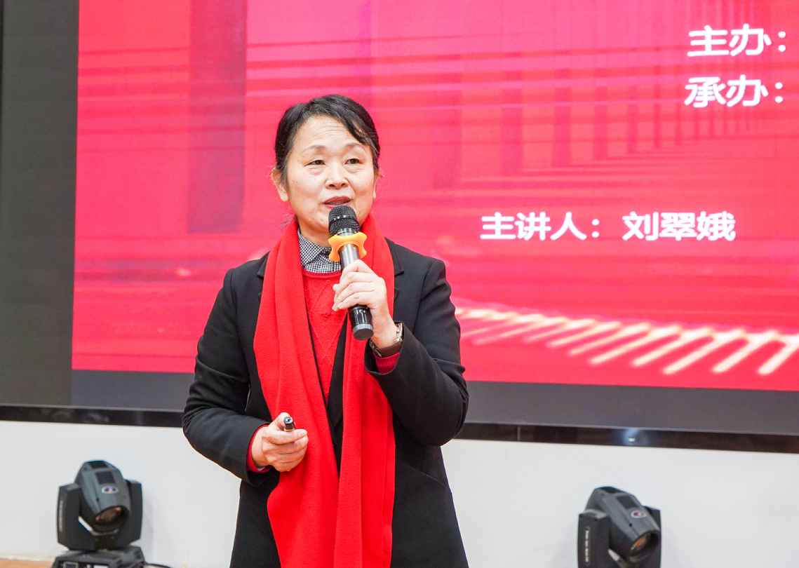 刘翠娥以“传承中华孝道 实现精彩人生”为题,从中华传统“五福” 理念切入,以“孝为德本,修身为要;孝心一开,福慧皆来;践行孝道,活出精彩”为主要内容,结合2024年感动中国人物、清华博士庞众望寒门尽孝仍立志科研报国等励志事迹,深入解读了孝道文化,生动解读了孝敬父母“养父母之身、之心、之志、之慧”的四个层次,以及 “小孝敬父母、中孝尊师长、大孝报国家、至孝和天下”的四重境界,系统阐释孝道的深层内涵、重要意义与实践路径,诠释大孝的责任担当。为全校师生带来了一场浸润心灵的文化盛宴。
